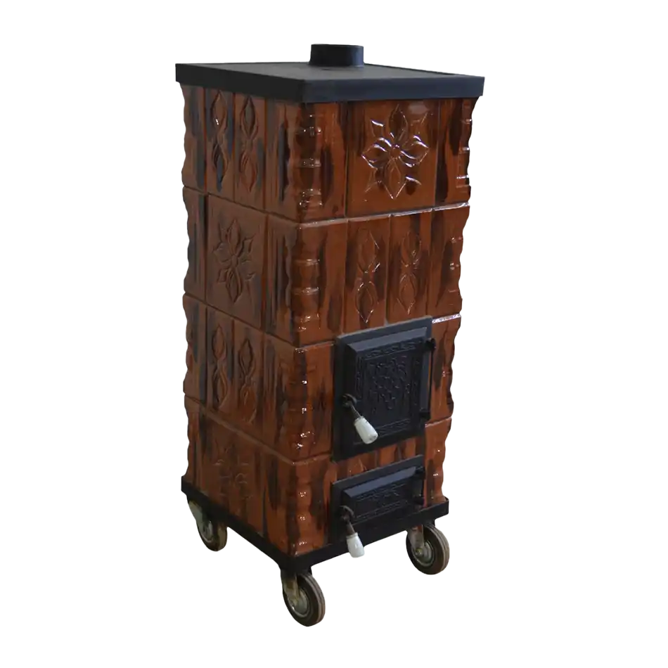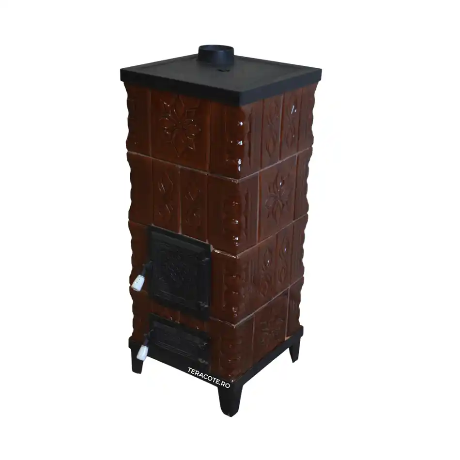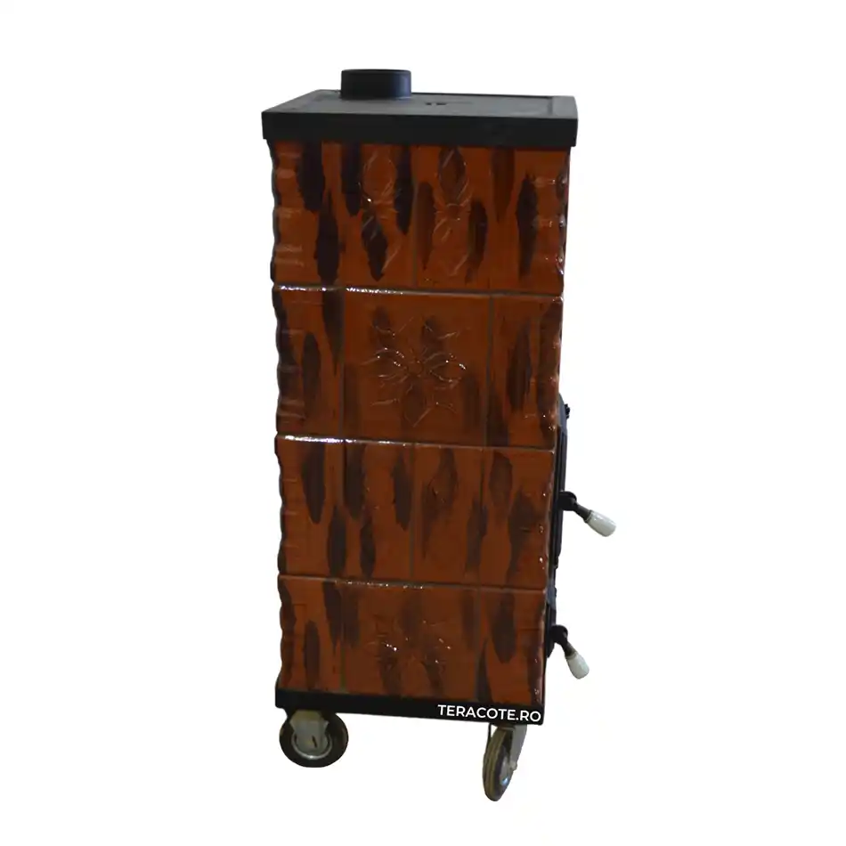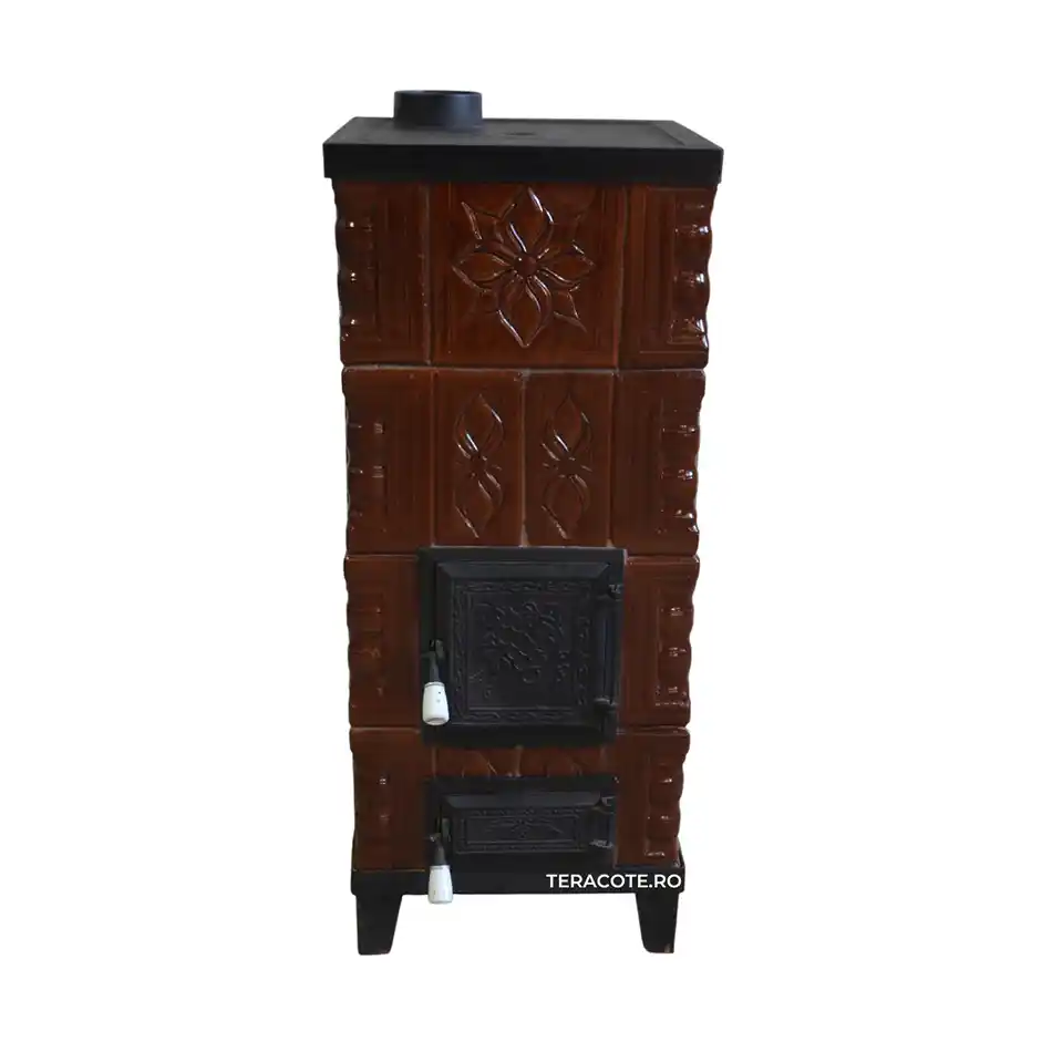 Sobă de încălzit CHIARA are 4 rânduri de teracotă și o plită ce poate fi folosită pentru gătit. Acesta este montată pe un cadru metalic fix sau mobil. Pe partea frontală se află ușa de alimentare cu lemne și ușa de la cenușar.